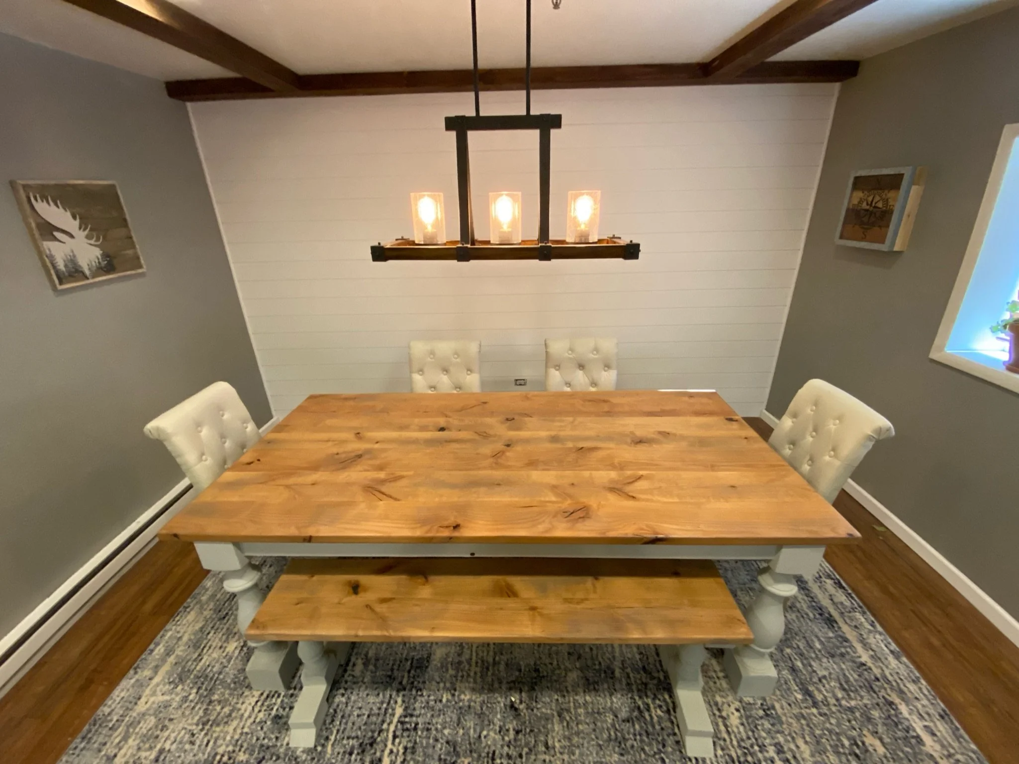 Simplify your style with a complete dining set from Timberline Woodworks. Our tables, crafted from reclaimed wood and featuring unique metal legs, come paired with complementary chairs for an instantly cohesive and stunning look. Invest in sustainable beauty and effortless design for your home.